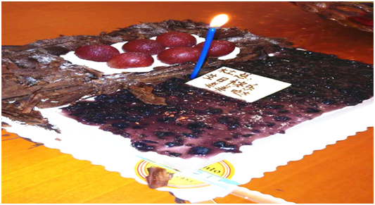 “祝你生日快乐,祝你生日快乐。。。。。。”在暖暖的生日祝福中,三位寿星隆重登场。